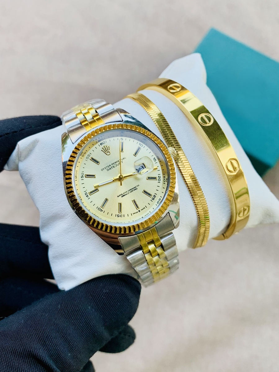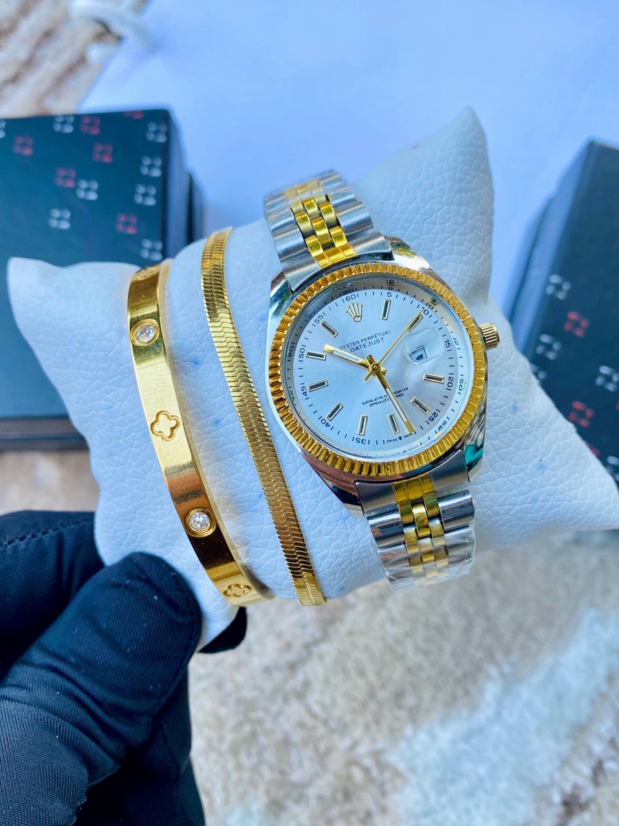باكدج 3 قطع (ساعة وأسورة وأنسيال) High quality بضمان ضد تغيير اللون عرض لفترة محدودة✨